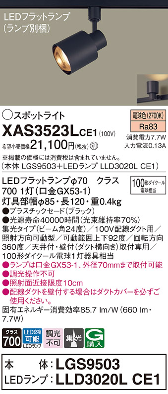 パナソニック XAS3523LCE1(ランプ別梱) スポットライト 配線ダクト取付型 LED(電球色) 集光24度 ブラック [xas3523lce1]