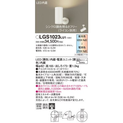 パナソニック LGS1023LU1 スポットライト 天井直付型・壁直付型・据置取付型 LED(調色) 集光30度 調光(ライコン別売) ホワイト