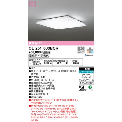 オーデリック OL251603BCR シーリングライト 12畳 調光 調色 Bluetooth リモコン別売 LED一体型 電球色〜昼光色 [♭]
