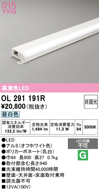 オーデリック OL291191R 間接照明 非調光 LED一体型 昼白色 屋内用 薄型 長900 オフホワイト [ol291191r]