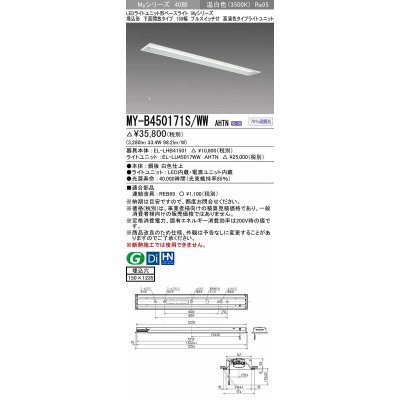 三菱 MY-B450171S/WW AHTN LEDライトユニット形ベースライト 埋込形 下面開放 150幅 プルスイッチ付 高演色タイプ(Ra95) 固定出カ 温白色 受注生産品 [§]