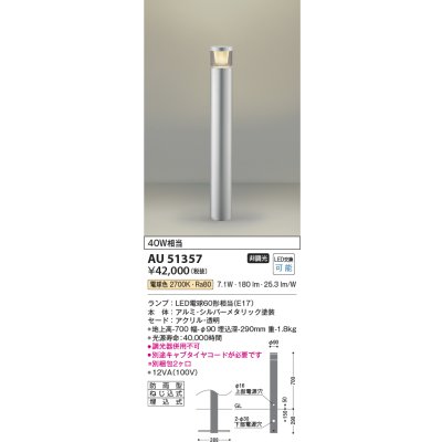 コイズミ照明 AU51357(2梱包) エクステリア ガーデンライト 非調光 LEDランプ 電球色 防雨型 シルバーメタリック [au51357]
