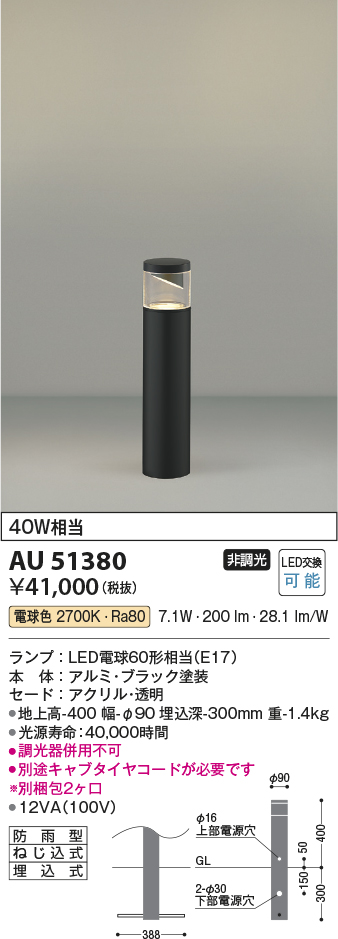 コイズミ照明 AU51380(2梱包) エクステリア ガーデンライト 非調光 LEDランプ 電球色 防雨型 ブラック [au51380]