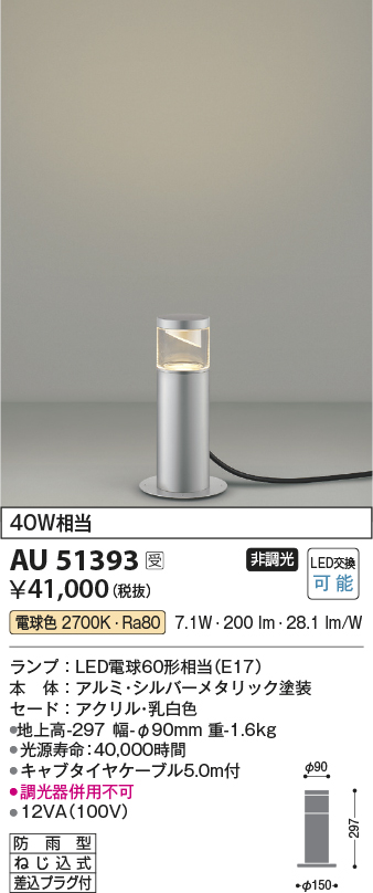 コイズミ照明 AU51393 エクステリア ガーデンライト 非調光 LEDランプ 電球色 防雨型 シルバーメタリック 受注生産品 [§] [au51393]