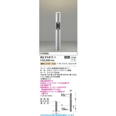 コイズミ照明 AU51411(2梱包) エクステリア ガーデンライト 非調光 LEDランプ 電球色 防雨型 シルバーメタリック 受注生産品 [§] [au51411]