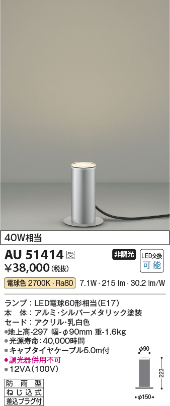 コイズミ照明 AU51414 エクステリア ガーデンライト 非調光 LEDランプ 電球色 防雨型 シルバーメタリック 受注生産品 [§] [au51414]