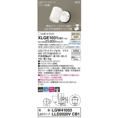 パナソニック XLGE1031CB1(ランプ別梱) エクステリア スポットライト LED(温白色) 天井・壁直付型 集光24度 防雨型 調光(ライコン別売) ホワイト [xlge1031cb1]