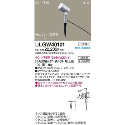 パナソニック LGW40101 エクステリア スポットライト ランプ別売(口金GX53-1) LED スパイク取付型 防雨型 シルバーメタリック [lgw40101]
