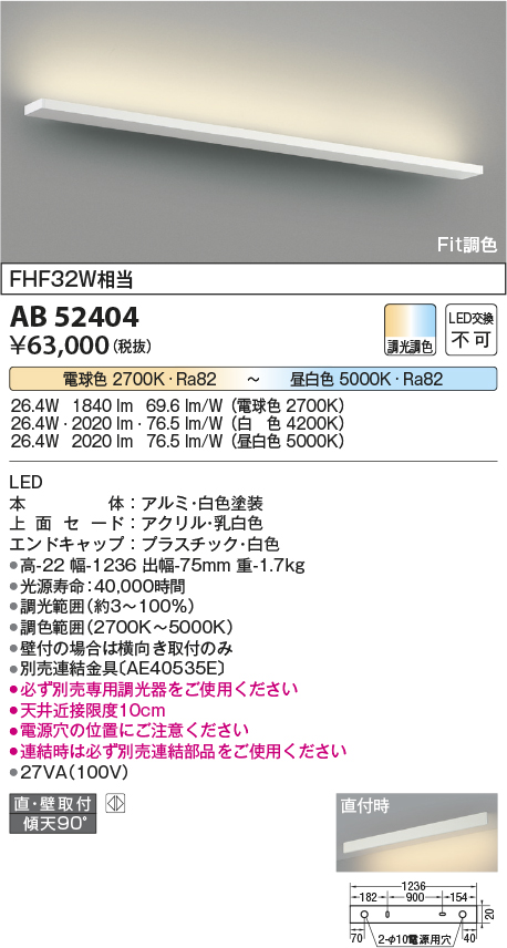 コイズミ照明 AB52404 ブラケットライト 調光 調色 Fit調色 調光器別売 LED一体型 直付・壁付取付 ホワイト