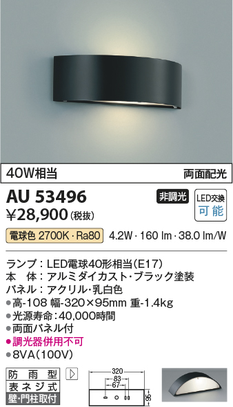 コイズミ照明 AU53496 エクステリアライト 門柱灯 非調光 LEDランプ交換可能型 電球色 壁付・門柱取付 両面配光 防雨型 ブラック [au53496]