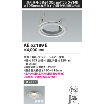 コイズミ照明 AE52189E リニューアルプレート Φ125mm(専用タイプ)既存天井埋込穴径 ブライトシルバー [ae52189e]