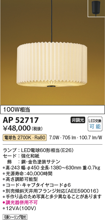 コイズミ照明 AP52717 ペンダントライト LEDランプ交換可能型 非調光 フランジタイプ 和風 電球色 [♭] [ap52717]