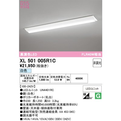 オーデリック XL501005R1C(LED光源ユニット別梱) ベースライト W230 非調光 LEDユニット交換型 白色 直付型