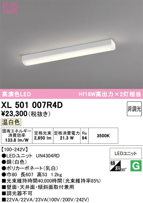 オーデリック XL501007R4D(LED光源ユニット別梱) ベースライト 非調光 LEDユニット交換型 温白色 直付型 [xl501007r4d]