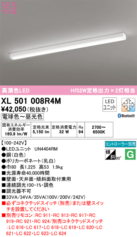 オーデリック XL501008R4M(LED光源ユニット別梱) ベースライト 調光 調色 Bluetooth コントローラー別売 LEDユニット交換型 電球色〜昼光色 直付型 £