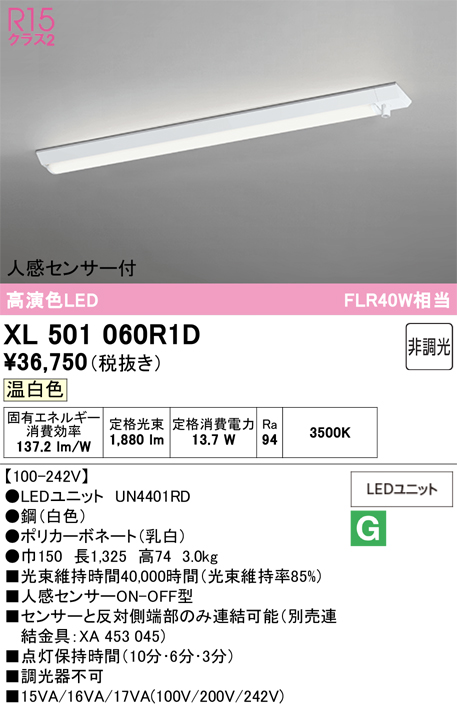 オーデリック XL501060R1D(LED光源ユニット別梱) ベースライト 非調光 LEDユニット交換型 温白色 直付型 [xl501060r1d]