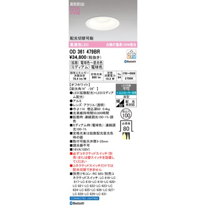 オーデリック OD361479BR ダウンライト φ100 配光切替 調光 調色 Bluetooth コントローラー別売 LED一体型 電球色〜昼光色 電球色 浅型 オフホワイト [od361479br]