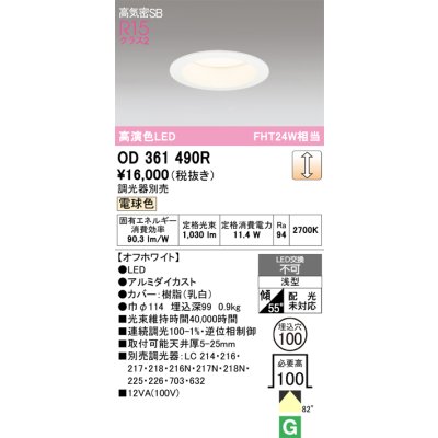 オーデリック OD361490R ダウンライト φ100 調光 調光器別売 LED一体型 電球色 浅型 オフホワイト [od361490r]