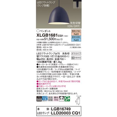 パナソニック XLGB1681CQ1(ランプ別梱) ペンダントライト 吊下型 LED(昼光色・電球色) ホーローセード・拡散・ダクトタイプ 光色切替(ON/OFF) ダークグレー [xlgb1681cq1]