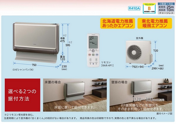 日立 RAF-D50F2(N) エアコン 16畳 ルームエアコン 床置きFDシリーズ 寒冷地向 メガ暖 白くまくん ロゼシャンパン [♭♪] [raf-d50f2-n]