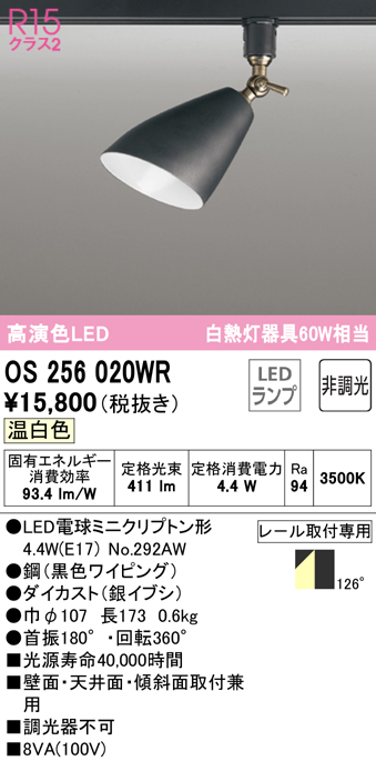 オーデリック OS256020WR(ランプ別梱) スポットライト 非調光 LEDランプ 温白色 プラグタイプ ブラック [os256020wr]