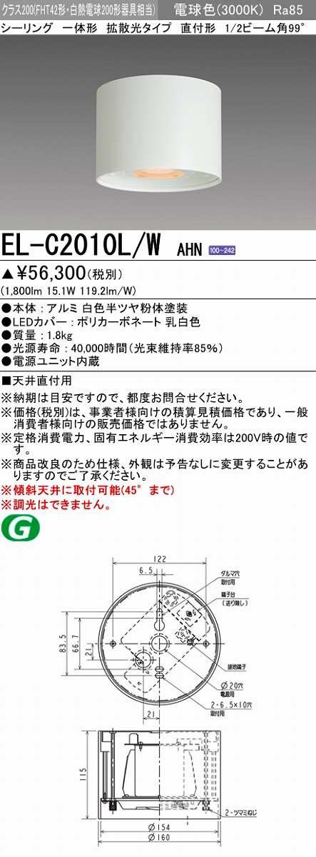 三菱 EL-C2010L/WAHN シーリングライト 天井直付用 拡散光タイプ 固定出力 電球色 電源ユニット内蔵 ホワイト 受注品 [§] [el-c2010l-wahn]