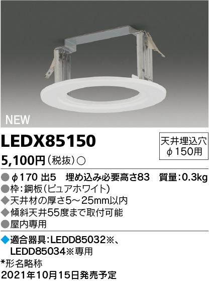 東芝ライテック LEDX85150 LED部品 ダウンライト用リニューアルプレート 屋内専用 天井埋込穴φ150用 [ledx85150]