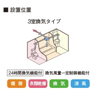 換気タイプ: 3室換気タイプ(浴室+トイレ+洗面所)