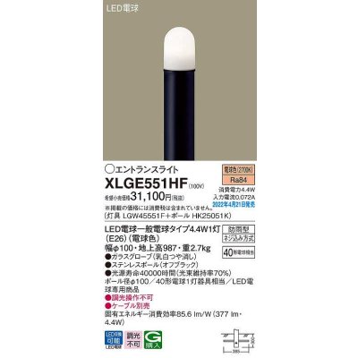 パナソニック XLGE551HF エントランスライト ランプ同梱 LED(電球色) 地中埋込型 LED電球交換型 防雨型 地上高987mm オフブラック [xlge551hf]