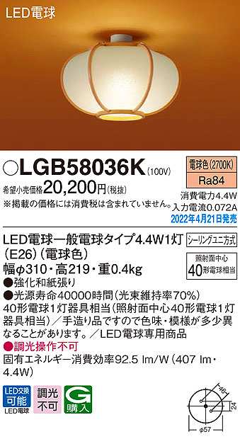 パナソニック LGB58036K 小型シーリングライト ランプ同梱 和風 LED(電球色) シーリングユニ方式 数寄屋