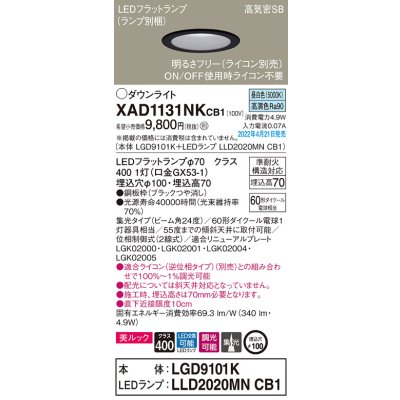パナソニック XAD1131NKCB1(ランプ別梱) ダウンライト 埋込穴φ100 調光(ライコン別売) LED(昼白色) 天井埋込型 美ルック 高気密SB形 ブラック
