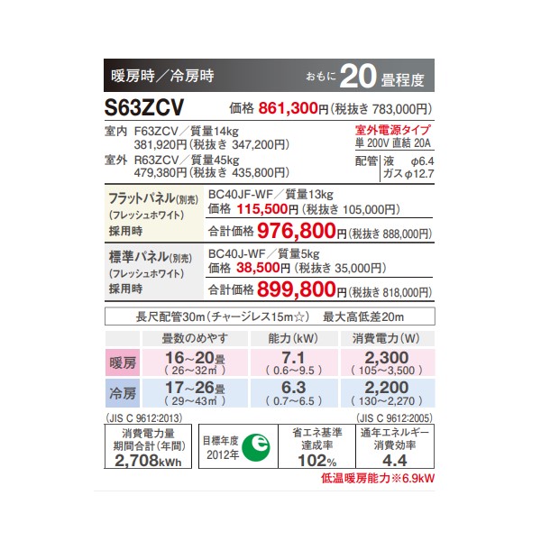 ダイキン 【S63ZCV+フラットパネル】 ハウジングエアコン 20畳程度 天井埋込カセット形 シングルフロー Cシリーズ 単200V (S63RCVの後継品) [♪▲] [s63zcv-fr]