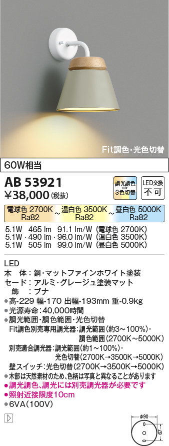 コイズミ照明 AB53921 ブラケットライト Fit調色・光色切替 調光器別売 LED一体型 グレージュ [ab53921]