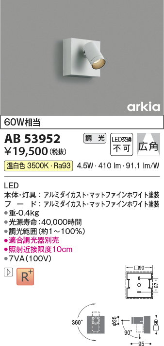 コイズミ照明 AB53954 ブラケットライト 調光 調光器別売 LED一体型 昼白色 arkia マットファインホワイト [ab53954]