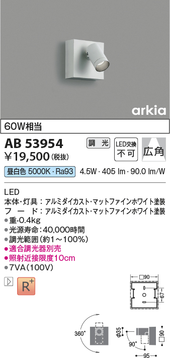 コイズミ照明 AB53955 ブラケットライト 調光 調光器別売 LED一体型 昼白色 arkia マットブラック [ab53955]