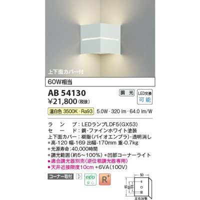 コイズミ照明 AB54130 ブラケットライト 調光 調光器別売 LEDランプ 温白色 コーナー取付 上下面カバー付 ファインホワイト [ab54130]