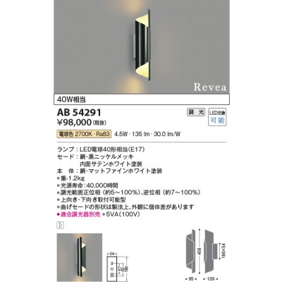 コイズミ照明 AB54291 ブラケットライト 調光 調光器別売 LEDランプ 電球色 Revea 黒ニッケルメッキ [ab54291]