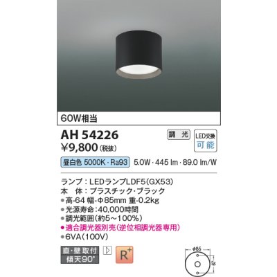 コイズミ照明 AH54226 シーリングライト 調光 調光器別売 LEDランプ 昼白色 直付・壁付取付 ブラック [ah54226]