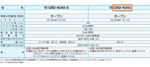 サン電子 CBD-K045 BS・110度CSアンテナ 45cm型 新4K8K衛星放送対応 [£] [cbd-k045]