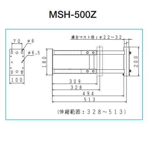 サン電子 MSH-500Z 伸縮型軒下金具 中間・底兼用型 マスト径φ22〜φ32用 [£]
