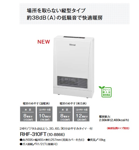 リンナイ 【RHF-310FT 都市ガス用】 ガスFF暖房機 木造8畳 / コンクリート造10畳 給排気筒トップ別売 (RHF-309FT 後継品) [♪■] [rhf-310ft-12a13a]
