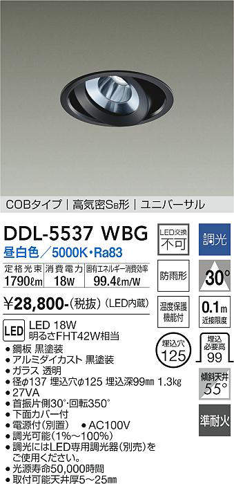 大光電機(DAIKO) DDL-5537WBG ダウンライト 埋込穴φ125 調光(調光器別売) 昼白色 LED内蔵 別置電源付 COBタイプ 高気密SB ユニバーサル 準耐火 防雨形 黒