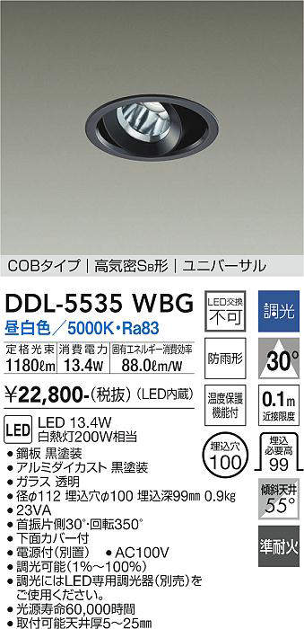 大光電機(DAIKO) DDL-5535WBG ダウンライト 埋込穴φ100 調光(調光器別売) 昼白色 LED内蔵 別置電源付 COBタイプ 高気密SB ユニバーサル 準耐火 防雨形 黒