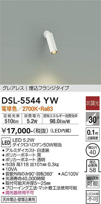 大光電機(DAIKO) DSL-5544YW スポットライト 非調光 電球色 LED内蔵 埋込フランジタイプ グレアレス 白 [dsl-5544yw]