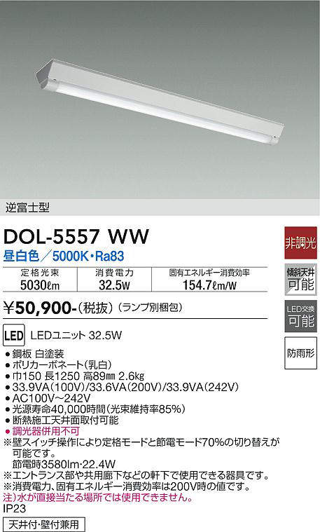 大光電機(DAIKO) DOL-5557WW(ランプ別梱) ベースライト 軒下用 非調光 昼白色 電源内蔵 LED 逆富士型 防雨形 白 [dol-5557ww]
