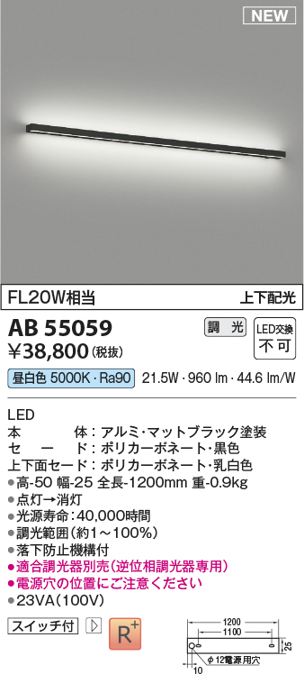 コイズミ照明 AB55059 ブラケット 調光 調光器別売 LED一体型 昼白色 上下配光 マットブラック [ab55059]