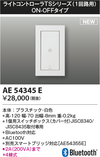 コイズミ照明 AE54345E 部品 ライトコントローラ Bluetooth対応 1個用スイッチボックス(カバー付) ON/OFFタイプ 白色 [ae54345e]