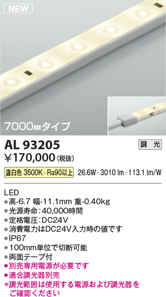コイズミ照明 AL93205 間接照明器具 テープライト 調光 調光器別売 LED一体型 温白色 7000mmタイプ [al93205]