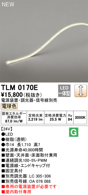 オーデリック TLM0170E 間接照明 長1710 テープライト ドットレス・トップビュータイプ 調光 電源装置・調光器・信号線別売 LED一体型 電球色 受注品 [§] [tlm0170e]