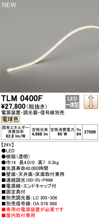 オーデリック TLM0400F 間接照明 長4010 テープライト ドットレス・トップビュータイプ 調光 電源装置・調光器・信号線別売 LED一体型 電球色 [tlm0400f]
